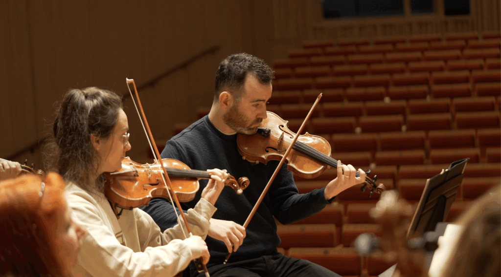 Alongside performing, Will works as an arranger. His arrangements have been featured on both Solem Quartet albums, and have been performed and broadcast by groups worldwide including London Mozart Players, the Jess Gillam Ensemble and the New Zealand Symphony Orchestra String Quartet. He has worked closely with visual artist/director Imran Perretta for his 2024 installation piece A Riot in ThreeActs, and his debut 2025 film ISH which won the audience award at the Critics’ Week at the Venice Film Festival. Will also works regularly with film composer Isabella Summers, including for the 2024 Netflix series Kaos, and the 2025 film My Oxford Year. In 2023/24 the Solem Quartet toured with vocalist Alice Zawadzki performing a set of Kate Bush songs arranged by Will, described as “lush and evocative”.