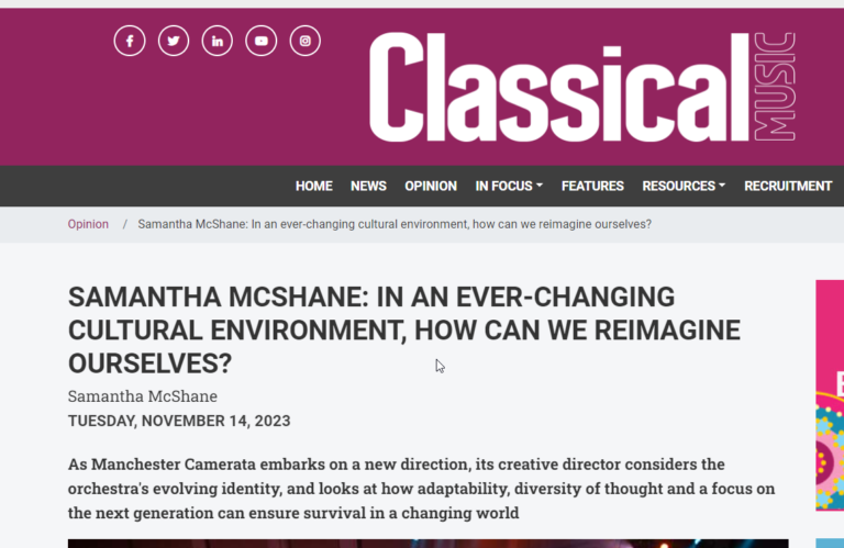 Essential Reading! Our Creative Director, Samantha McShane has written this incredible article for Classical Music Magazine.